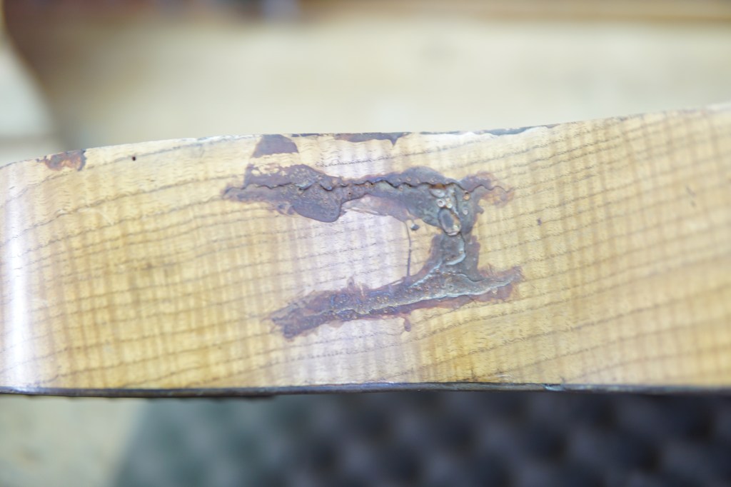 Δυστυχώς μετά τον αποχρωματισμό του οργάνου εμφανίστηκαν σημεία φαγωμένα από σαράκι.
